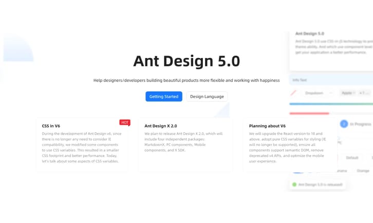 Ant Design has detailed design specifications and best practices, including color, typography, layout, icons, and animations, helping designers and developers maintain visual consistency and user experience across product interfaces.