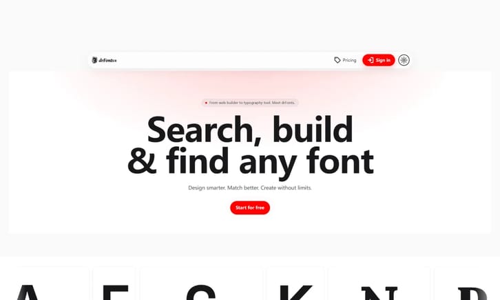 DrFonts.com is the world's first AI-powered font generator, launched in October 2025 with V1.0, allowing users to create, match, and customize fonts from PNG images, text prompts, or existing styles, with features like glyph-by-glyph editing and color palette adjustments, offering free commercial use rights for designers and brands.
