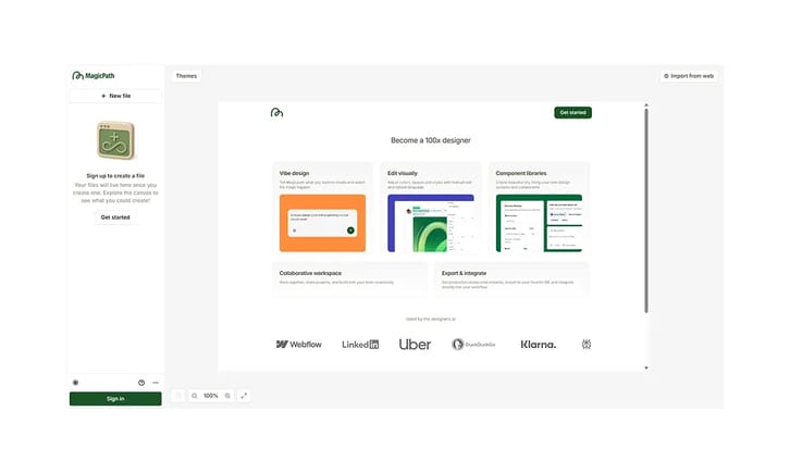 MagicPath.ai is an early-stage AI-driven prototyping platform launched in 2025, designed to simplify UI/UX creation by converting natural language descriptions into functional front-end designs, similar to Figma's infinite canvas but with AI automation. It targets designers, developers, and non-experts for quick ideation, allowing users to build interactive prototypes for apps and websites through prompts, with features like smooth canvas navigation and high-fidelity outputs. Reviews praise its speed and ease for early-stage concepting, though it's still evolving with limited public pricing details.