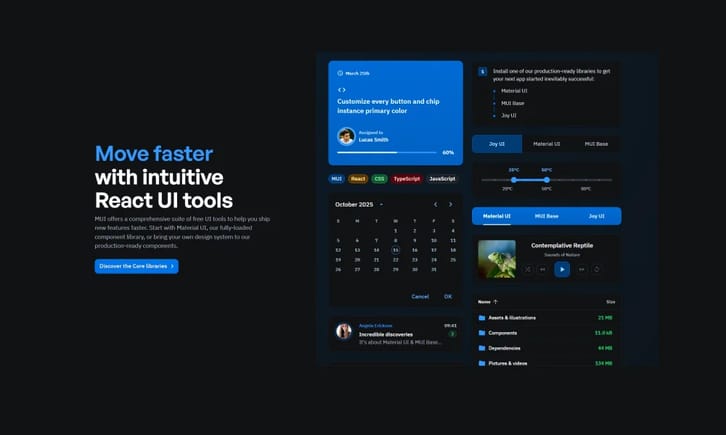 - MUI Templates: Pre-built, out-of-the-box React templates that can accelerate project kick-off and development.